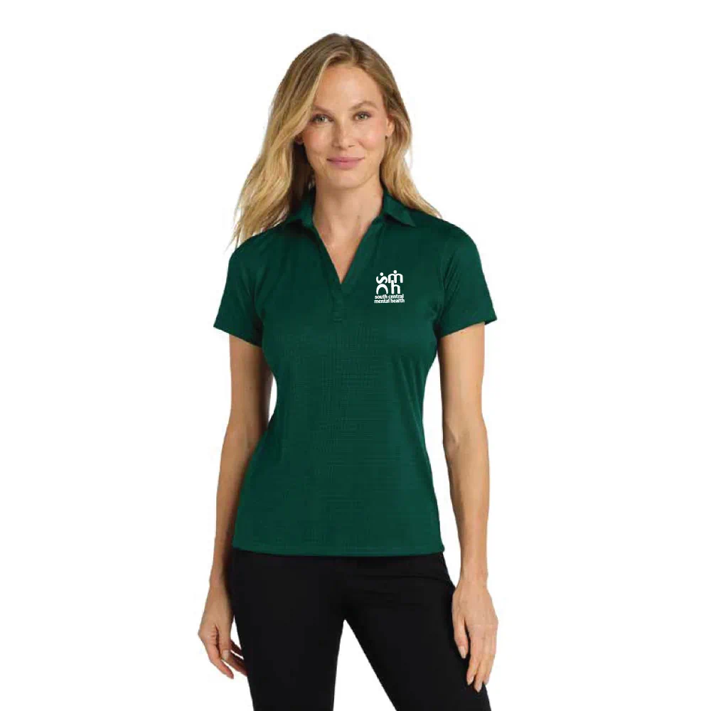 Lightweight and breathable, this moisture-wicking shirt has a pleasing drape, subtle jacquard texture and an open placket for feminine style.